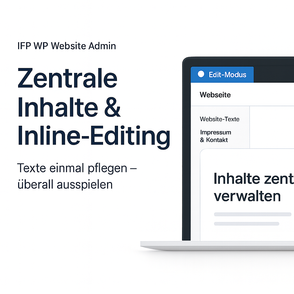 Verwalte Impressum, Kontakt- und Seitentexte zentral, gruppiere sie logisch und spiele sie als Platzhalter im gesamten Theme aus. Berechtigte Nutzer bearbeiten Inhalte direkt im Frontend per Inline-Editor – abgesichert mit Rechten, Nonce und Cache-Schutz.